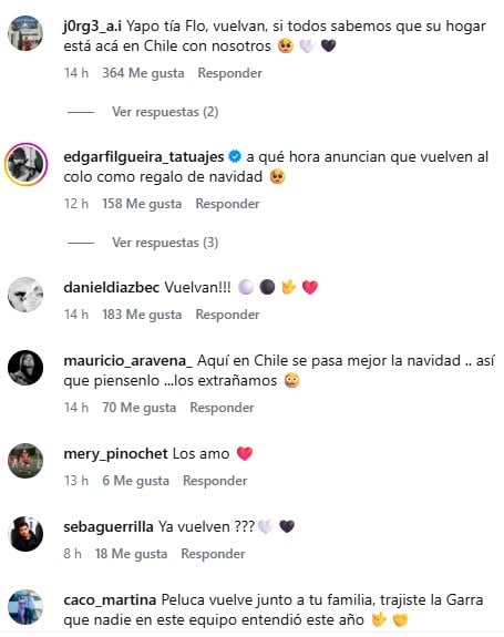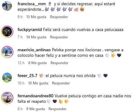 "Peluca vuelve junto a tu familia, trajiste la Garra que nadie en este equipo entendió este año", "Aquí en Chile se pasa mejor la navidad .. así que piénsenlo... los extrañamos", "a qué hora anuncian que vuelven al Colo como regalo de navidad", fueron algunos de los comentarios.