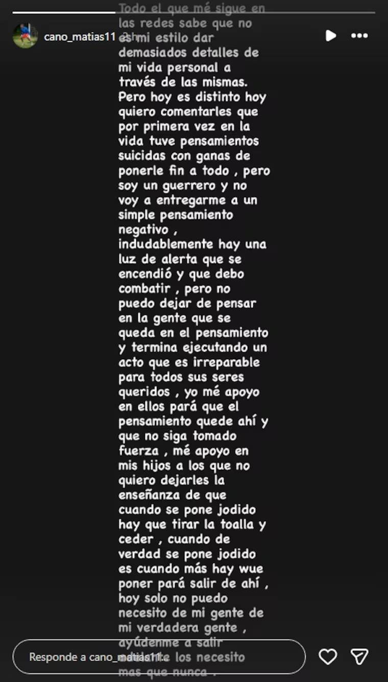 “Hoy quiero comentarles que por primera vez en la vida tuve pensamientos suicidas con ganas de ponerle fin a todo”, expresó el futbolista.