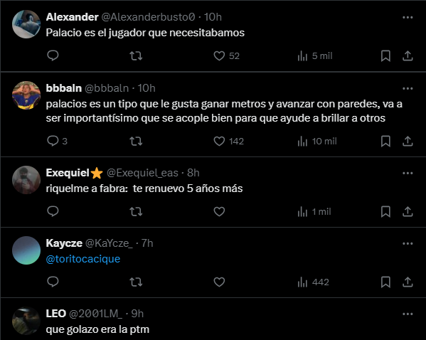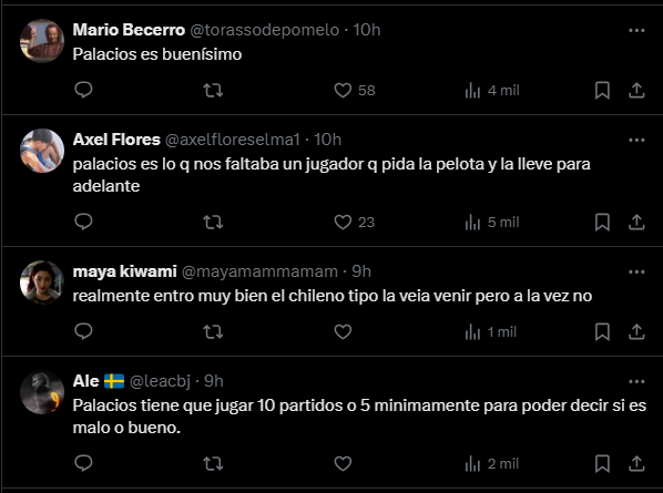Una de las intervenciones que protagonizó Palacios en el partido, fue destacada especialmente por los hinchas de Boca Juniors.