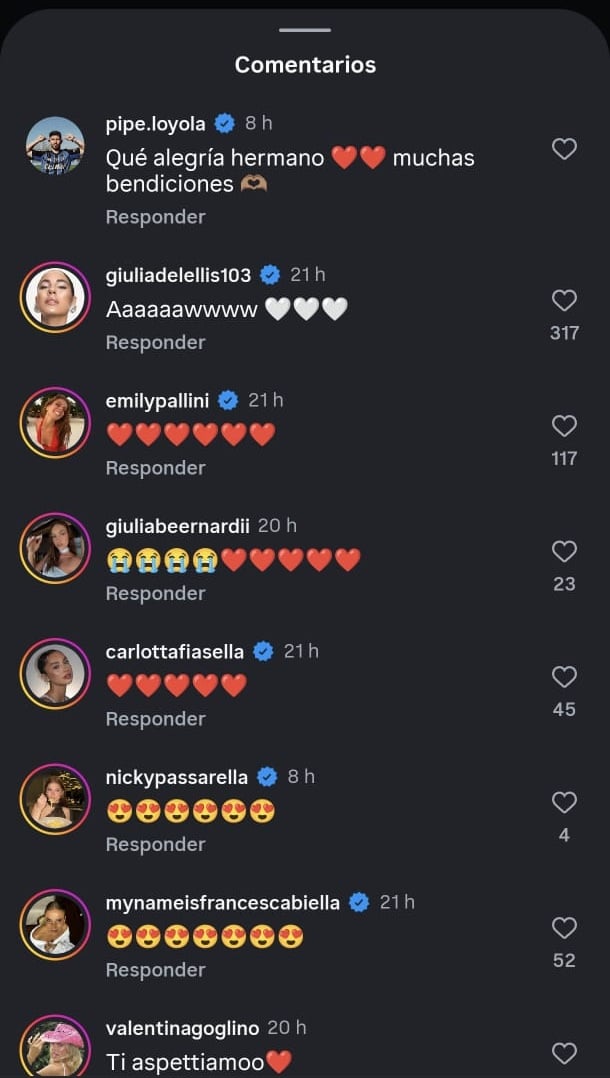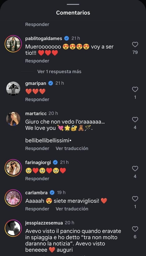 Desde Italia también llegaron múltiples saludos, reflejo de la gran comunidad que Giovanna Goglino mantiene en su país natal. Incluso, reconocidas influencers internacionales se sumaron a las felicitaciones, celebrando esta nueva etapa en la vida de la pareja.