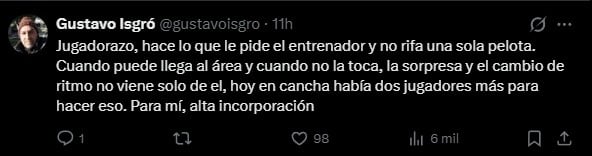 Una jugada recibió elogios de parte de los hinchas del elenco "Canalla", quienes se volcaron a las redes sociales para aplaudir el desempeño de Pizarro, quien vive su primera aventura en el fútbol extranjero.