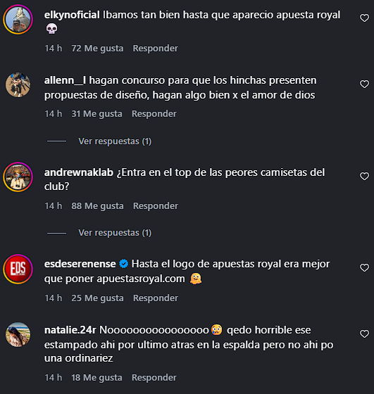 Rápidamente los hinchas se volcaron a la publicación oficial donde la criticaron duramente, e incluso la calificaron como la "más fea del torneo".
