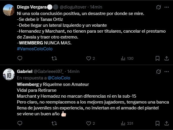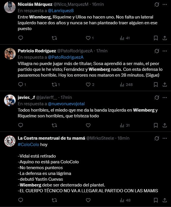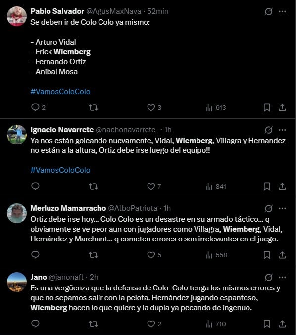 A partir de esto, los fanáticos albos se manifestaron en redes sociales armando prácticamente una lista de los jugadores que "se deben ir de Colo Colo hoy mismo".