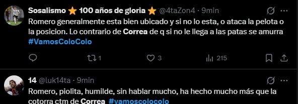 Los hinchas albos de inmediato se volcaron a las redes sociales para comentar lo ocurrido, donde además de elogiar a Romero, aprovecharon también de recordar al criticado Javier Correa, que en este partido es suplente, y el hecho de que ante Universidad de Chile en el Superclásico fue titular.