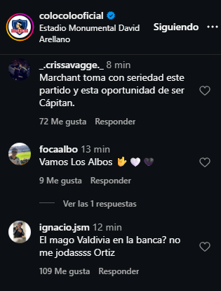 En esta oportunidad el capitán designado resultó ser Francisco Marchant, quien recibió varios "consejos" por parte de los hinchas en las redes sociales.