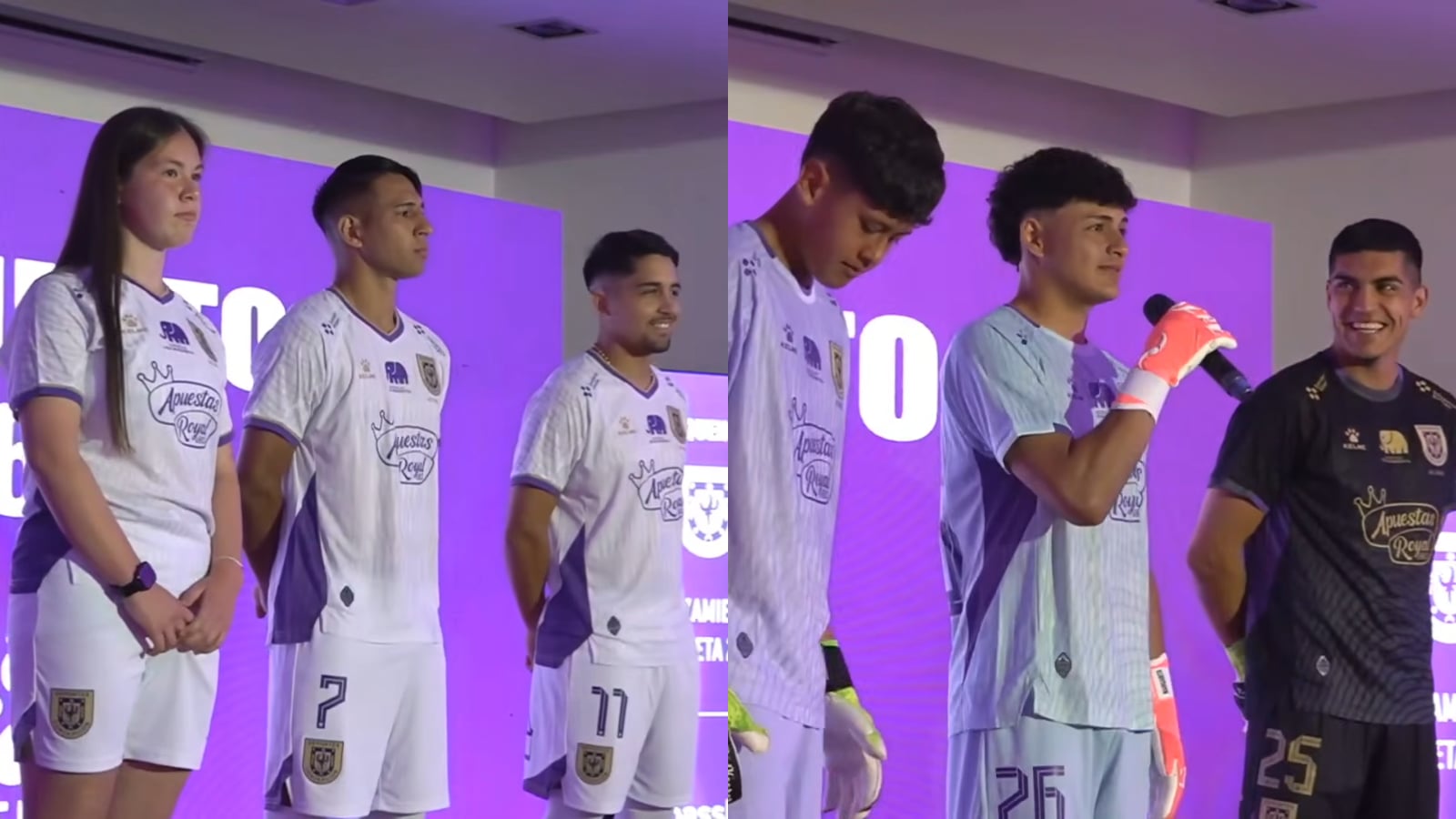 La de visita mantiene el cuello en 'V', además de mantener su característico blanco con detalles lilas y dorados, mientras que las de portero serán negras, celestes y lilas.