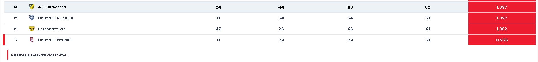 Barnechea cerró su participación en el Campeonato de la Primera B y mirará de reojo la última fecha dada su complicada ubicación en la tabla ponderada. El conjunto del sector oriente deberá esperar que Fernández Vial y Deportes Recoleta no ganen sus encuentros para no descender a la Segunda División.