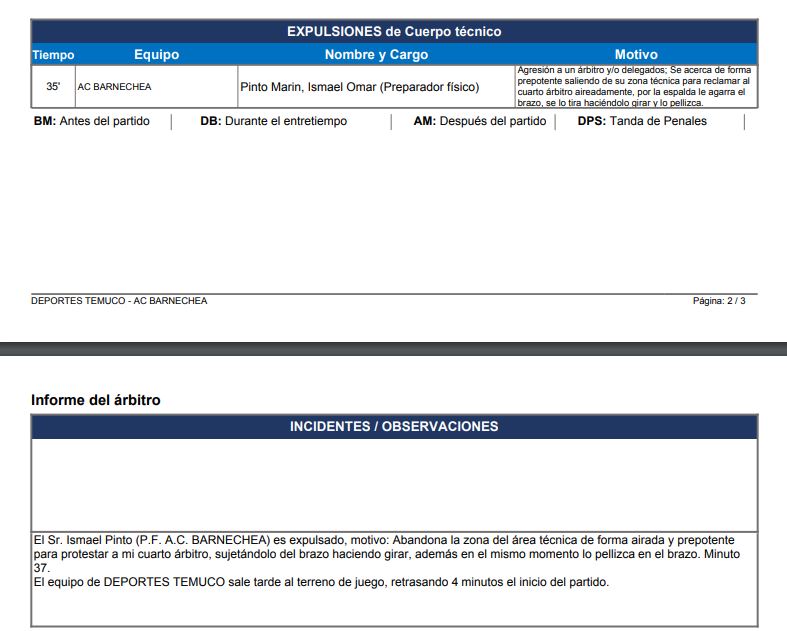 Sin embargo, el cierre de torneo para los "huaicocheros" no estuvo exento de polémica. El informe del árbitro Nicolás Millas consignó una insólita agresión por parte del preparador físico, Ismael Pinto.
