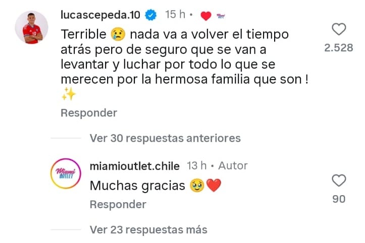 “Terrible. Nada va a volver el tiempo atrás, pero de seguro que se van a levantar y luchar por todo lo que se merecen, por la hermosa familia que son”, escribió el futbolista albo en la publicación de la influencer.