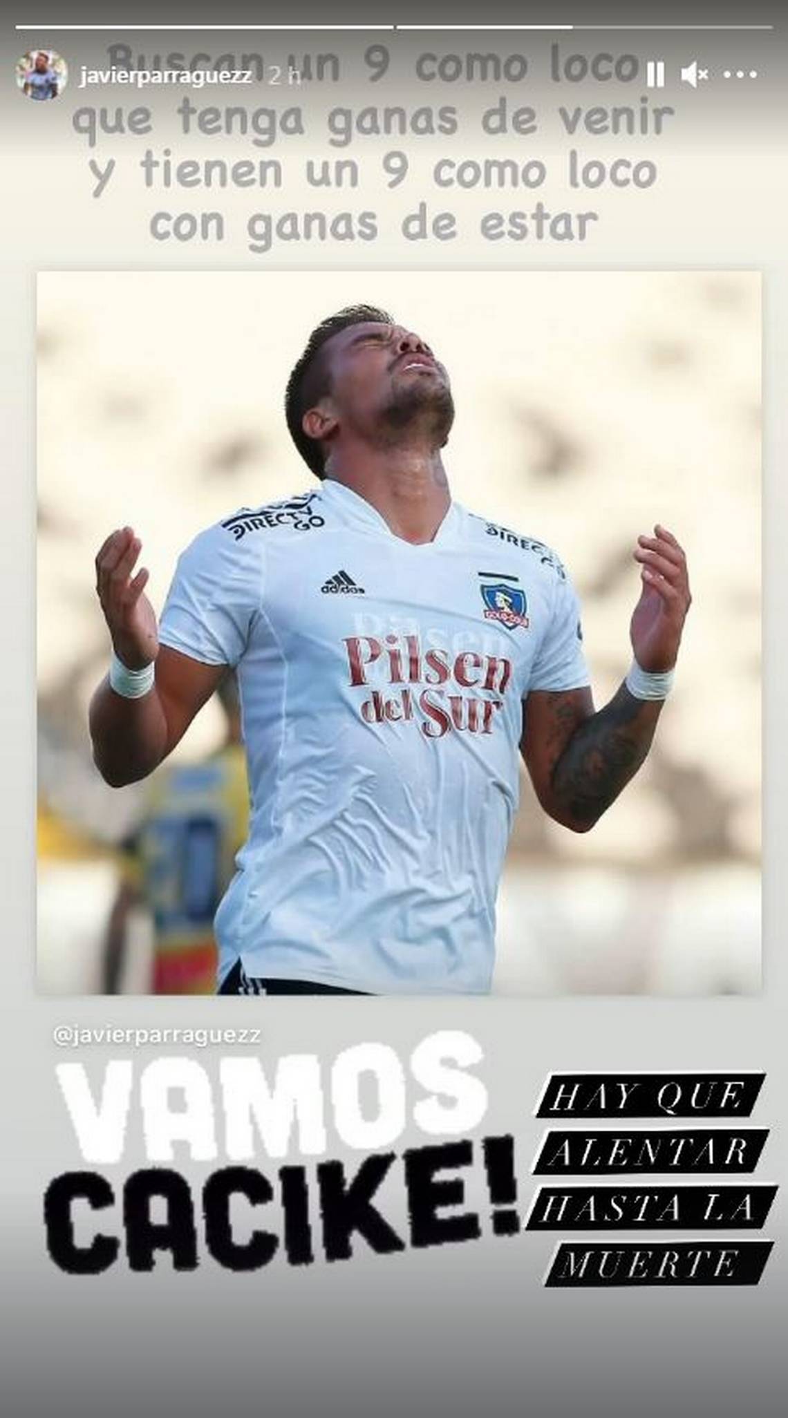 "Buscan un 9 como loco que tenga ganas de venir y tienen un 9 como lo con ganas de estar", escribió el ex Huachipato en una historia de Instagram.