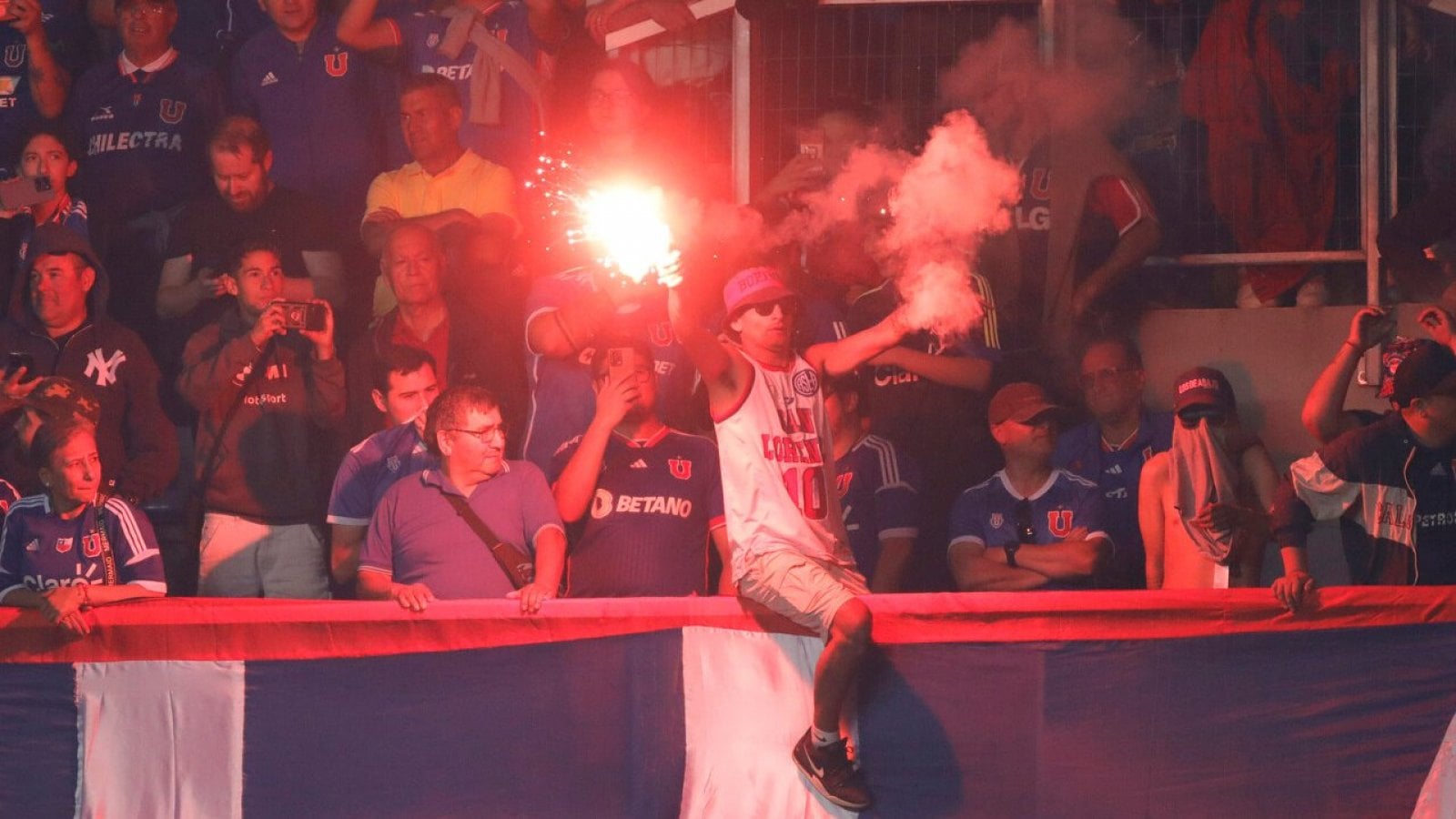 Desde la galería sur del recinto fueron lanzados fuegos artificiales (que están explícitamente prohibidos por ley) lo que obligó a que el encuentro fuera suspendido por algunos minutos.