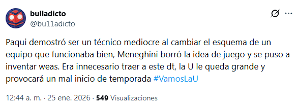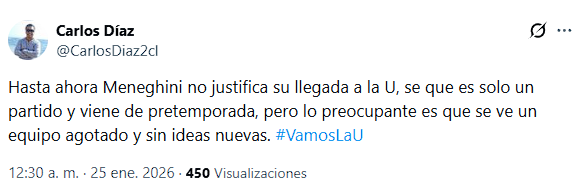 Pese a ser el primer amistoso de la pretemporada, los hinchas de la Universidad de Chile se mostraron preocupados y molestos por el rendimiento del equipo, que arrancará el Torneo Nacional el 1 de febrero frente a Audax Italiano.