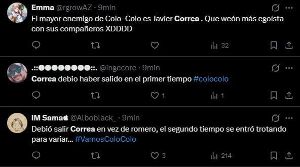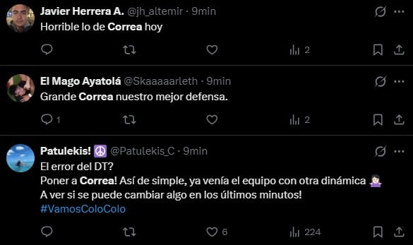 A partir de esto, un nombre se repitió en especial, convirtiéndose en Trending Topic: Javier Correa, quien tuvo un bajo desempeño, siendo el jugador más criticado por los hinchas albos.