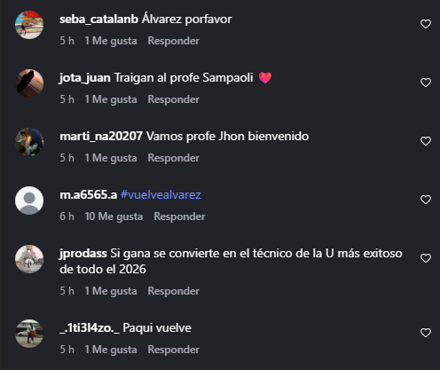 Asimismo, los hinchas de Universidad de Chile entregaron a su "candidato" y a través de redes sociales pidieron la vuelta de Gustavo Álvarez, aunque algunos solicitaron el regreso de Jorge Sampaoli.
