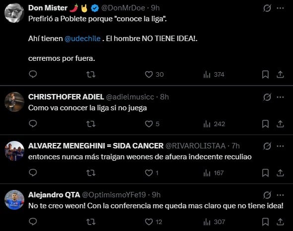 Y es que el entrenador azul volvió a ser el principal criticado por los hinchas tras el empate ante Deportes Limache, pero no sólo por el resultado sino además por una respuesta que dio en la conferencia de prensa posterior al duelo disputado en el estadio Nacional.