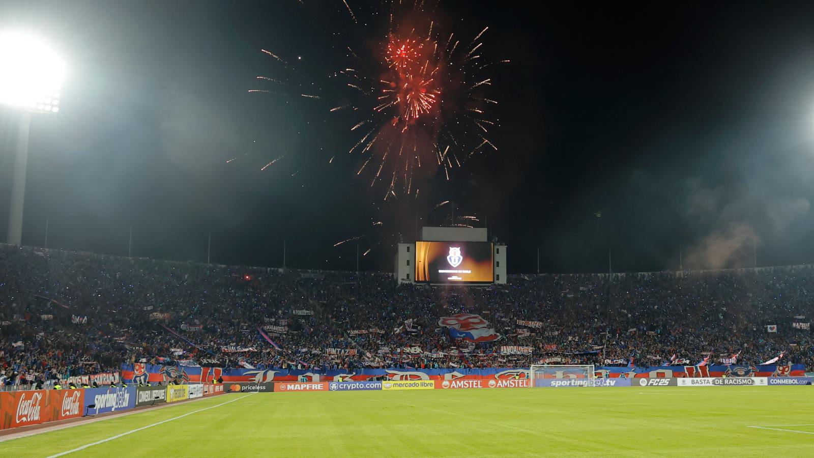 Todo ocurrió cerca del minuto 70 de partido, cuando comenzaron a reventar los fuegos artificiales mientras se desplegaba un lienzo alusivo al Superclásico frente a Colo Colo: "Pedreros siempre fue un funeral".