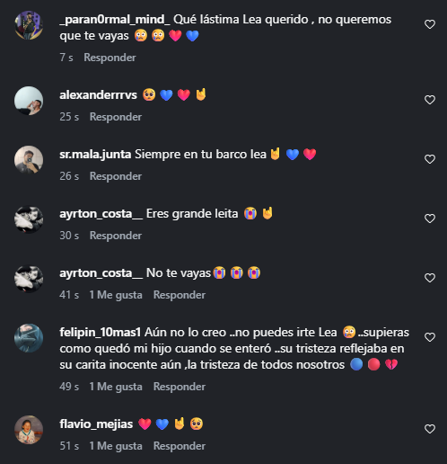 Tamara Taborda, esposa de Leandro Fernández, reaccionó de inmediato a la noticia y a través de Instagram, expresó su tristeza ante la inminente salida de su marido del cuadro azul.