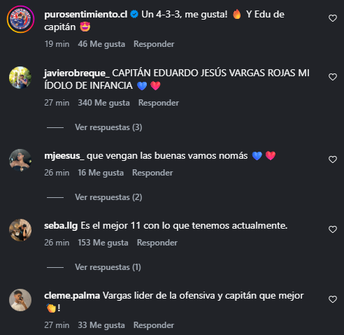 Ante las numerosas bajas por lesión y la ausencia de Charles Aránguiz, Marcelo Díaz y Matías Zaldivia, la capitanía recayó en Eduardo Vargas.