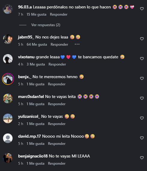 La determinación de "Paqui" generó una ola de reacciones por parte de los hinchas, quienes dedicaron sentidos mensajes de apoyo y aliento a "Lea" a través de Instagram.