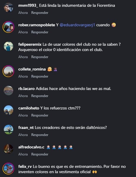"¡Respeten los colores!", "azul o rojo por favor", "la de respetar la esencia del club no se la saben" y "no somos Deportes Concepción", fueron algunos de los comentarios que quedaron en la publicación.