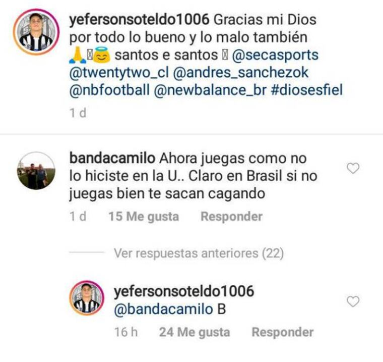 En 2019, el futbolista venezolano se vio envuelto en varios cruces con hinchas del Romántico Viajero por redes sociales, donde este respondió con una "B" a un seguidor que le recriminó por su salida. En ese momento, el cuadro laico estaba luchando por no descender.