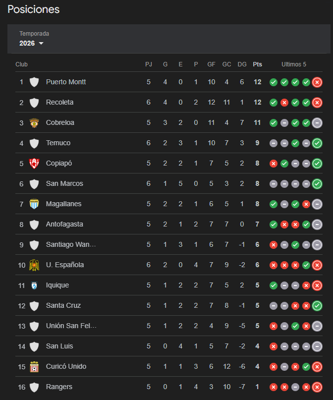 Unión Española perdió contra San Marcos de Arica y así quedó la tabla de posiciones del Campeonato de la Primera B