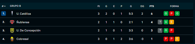 Universidad Católica llegó a los seis puntos y alcanzó el liderato del grupo B a la espera del choque entre Universidad de Concepción y Ñublense.