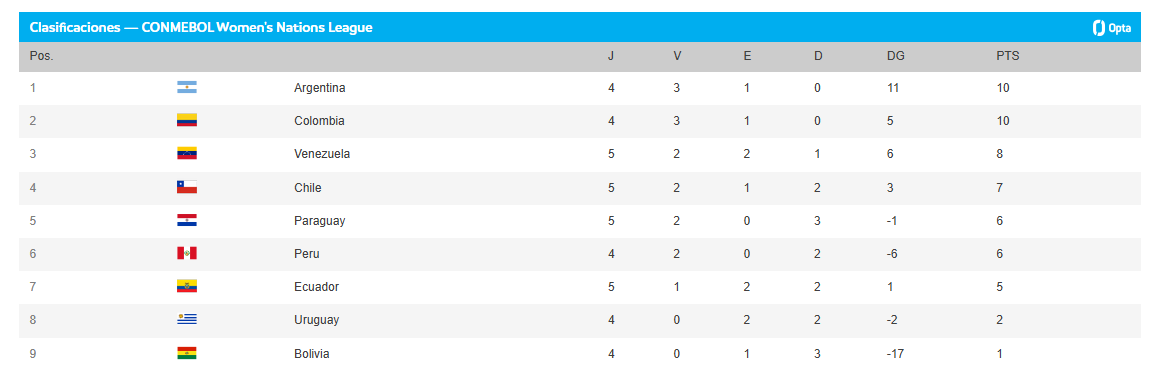Tabla de posiciones - Liga de Naciones de la Conmebol
