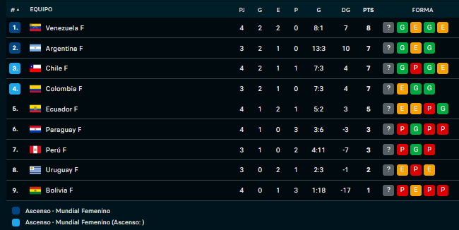 Tabla de posiciones - Liga de Naciones de Conmebol