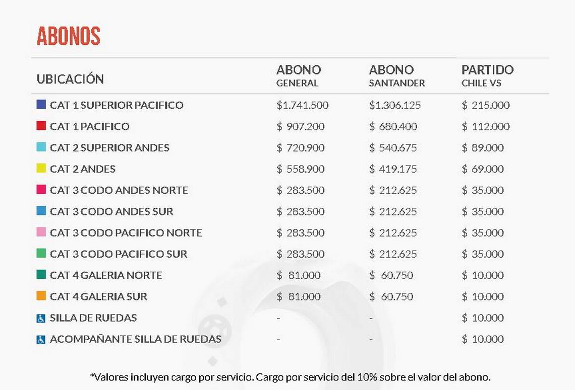 De acuerdo a lo informado por la ANFP, los precios de los abonos se pueden adquirir en el sistema Puntoticket y tendrán una rebaja de entre un 11% y 18%, en comparación al proceso del Mundial de Rusia 2018.