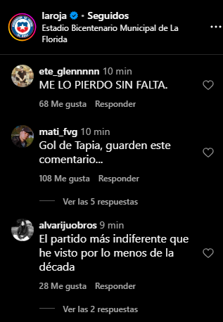 La Roja será dirigida de manera interina por Sebastián Miranda, quien confirmó la oncena compuesta por Lawrence Vigouroux; Fabián Hormazábal, Francisco Sierralta, Benjamín Kuscevic, Gabriel Suazo (capitán); Rodrigo Echeverría; Vicente Pizarro, Javier Altamirano; Lucas Cepeda, Ben Brereton, Gonzalo Tapia.