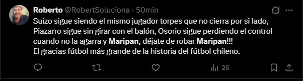 No obstante, el jugador del Midtjylland de Dinamarca no fue el único que se llevó las críticas de los hinchas tras el pitazo final, sino también Guillermo Maripán.