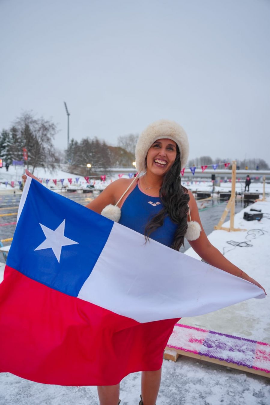 "Ya me había titulado de psicóloga en la Universidad de Chile. Estaba haciendo mi magíster y recibí una invitación para nadar en el glaciar Perito Moreno; esa fue la primera vez que nadé frente a un glaciar. El único requisito era que tenía que nadar sin traje neopreno, solo con traje de baño, gorra y lentes, nada más; ni ningún tipo de grasa. Ahí conocí que existían estos mundiales y se realizaban cada dos años".