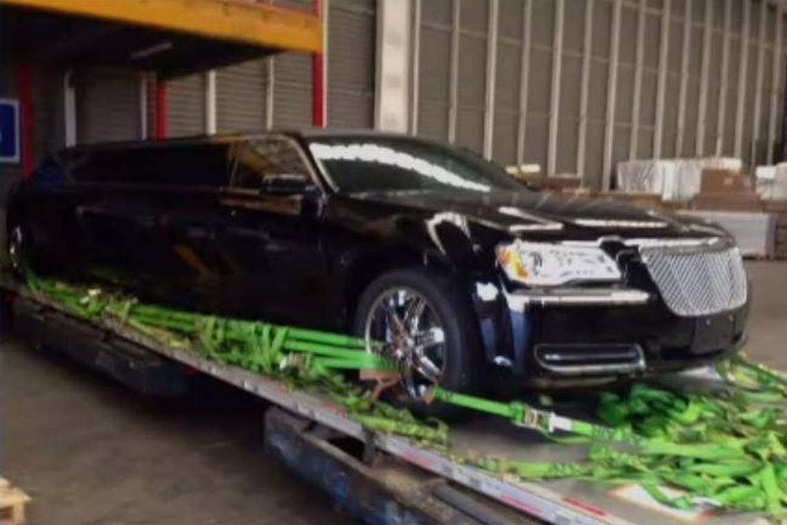 La limusina llegó este viernes desde Estados Unidos y fue descargada en la bodega 2 del Aeropuerto de Santiago.