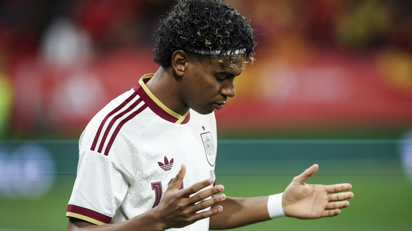 Visiblemente afectado por lo que estaba ocurriendo, Yamal, que solo disputó el primer tiempo, no se unió a sus compañeros al finalizar el partido para realizar la vuelta de honor para saludar a los hinchas.