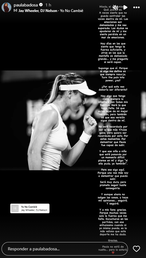 "Paula no está de vuelta... pero lo estará", cerró Paula Badosa.