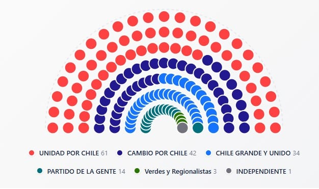 Asimismo, fue definida la nueva Cámara de Diputadas y Diputados que, en los próximos cuatro años, estará a cargo del Poder Legislativo en Chile.