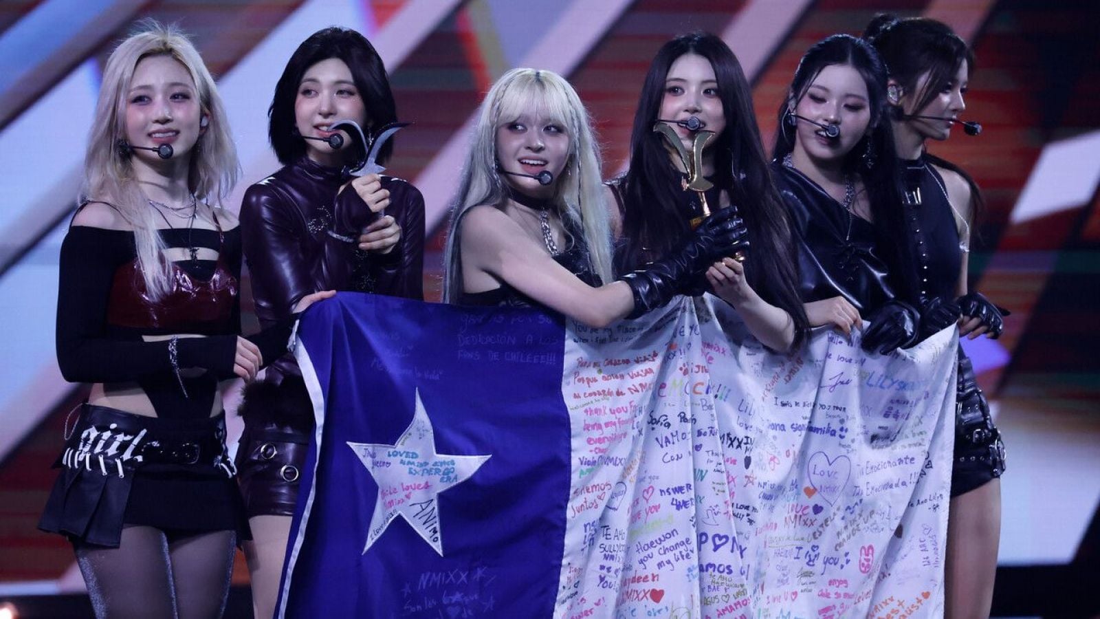 Luego de los minutos, hasta recibieron la bandera chilena firmada por sus fanáticas, donde quedó plasmado el momento histórico que marcó el primer grupo de K-Pop en la Quinta Vergara.