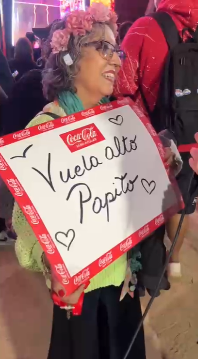 Para esta fanática, el show de la intérprete lleva una carga emocional debido al reciente fallecimiento de su padre Ernesto, a quien recordará con un emotivo cartel junto a la frase "Vuela alto papito".