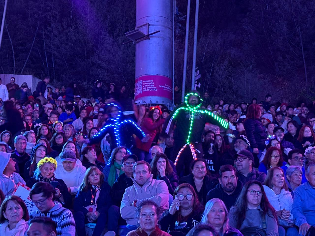 Ubicados en galería, locación alejada del escenario principal, la pareja buscó la manera más creativa para llamar la atención de la cantante y apareció con un luminoso traje led de tonos azules y verdes.