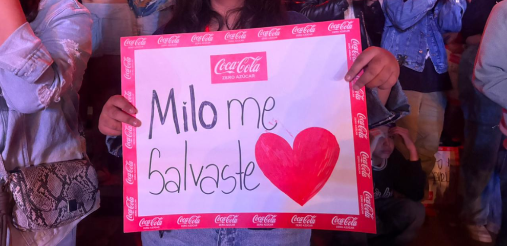 En medio de la galería, una joven de 13 años identificada como N.M levantó un letrero con la frase "Milo me salvaste" como agradecimiento a la música del argentino como método de terapia durante un momento complicado de su vida.