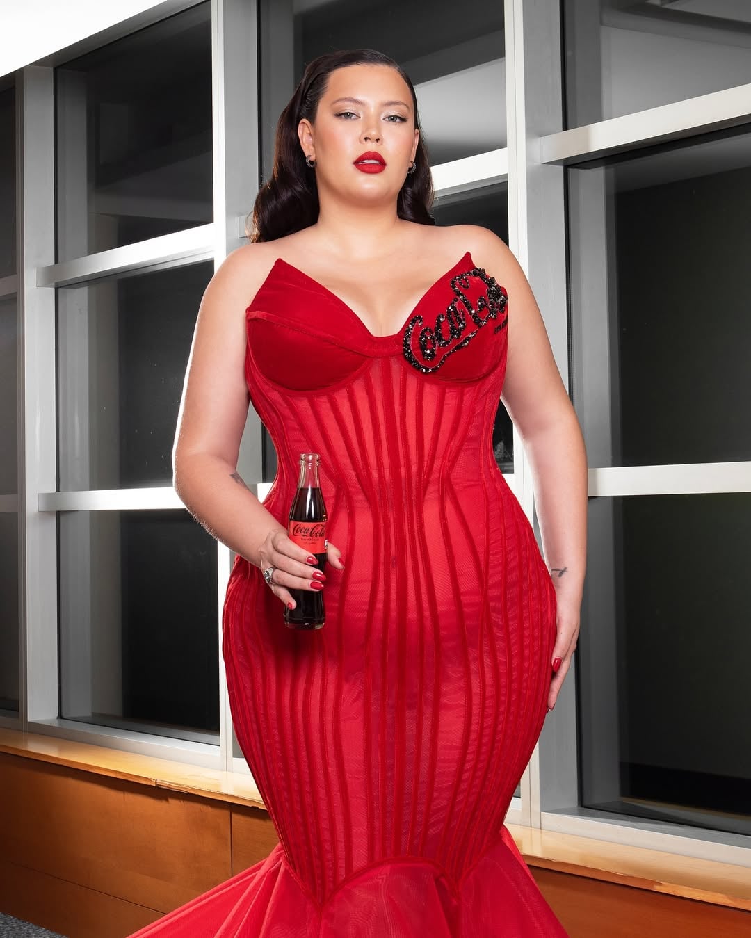 Recordemos que la exchica reality representó el año pasado a Coca-Cola y lució un vestido rojo en el que, en un costado, aparecía el nombre de la marca con detalles de lentejuelas. Esto generó gran controversia porque Pepsi auspiciaba la Gala en ese entonces.