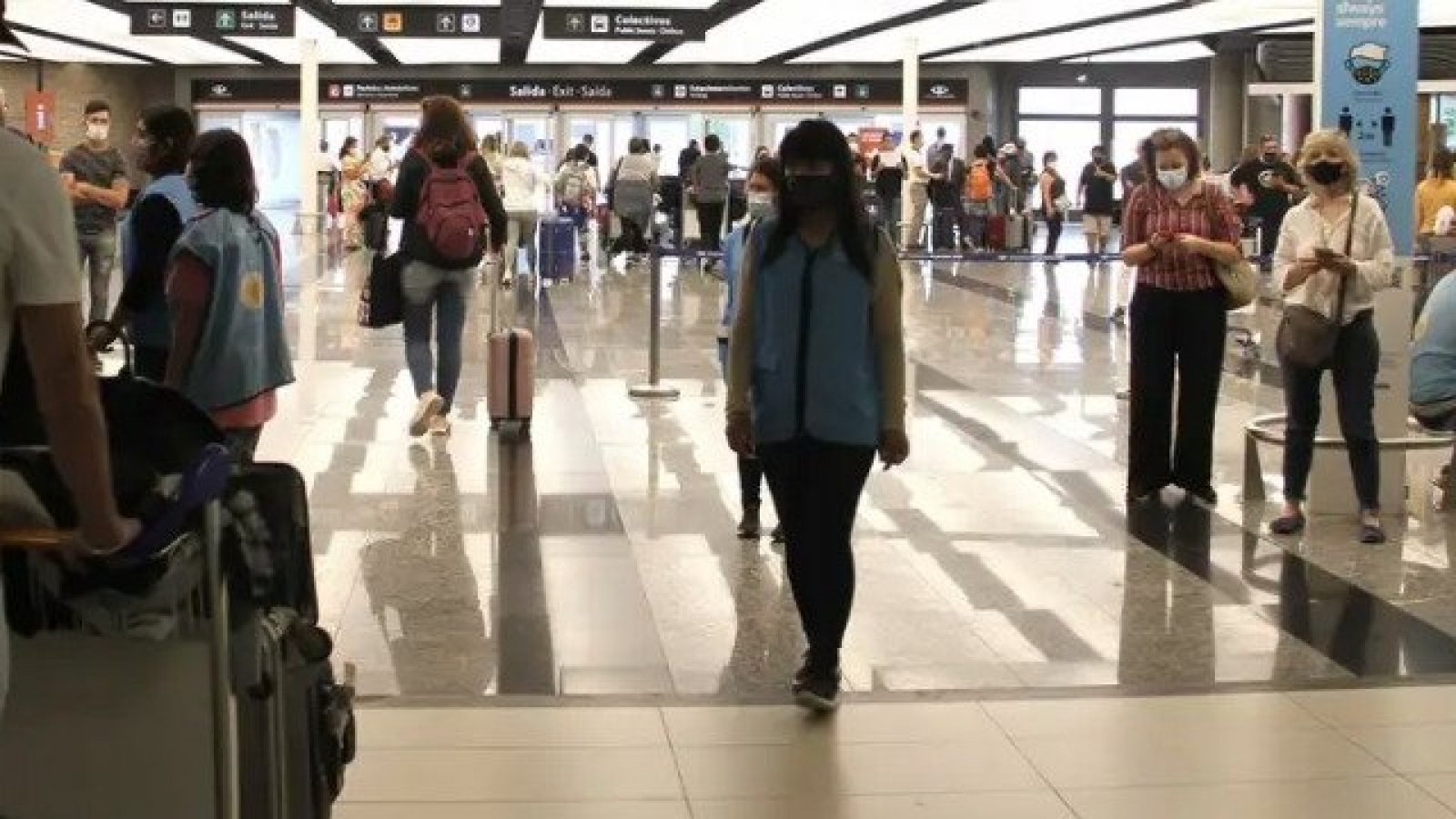 Un "desastre", señaló Sarahí Sánchez, una pasajera que esperaba hacía siete horas el vuelo hacia la localidad brasileña de Foz de Iguazú de camino a Venezuela, por lo que su "preocupación" era perder la conexión para tomar tres vuelos diferentes.