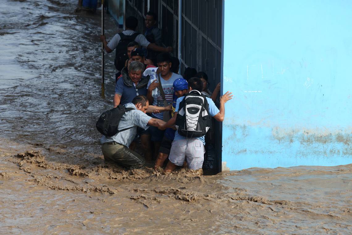 La mitad de Perú se encuentra en estado de emergencia por el desborde de ríos y aludes de lodo y piedras que han destruido carreteras, puentes y arrastrado personas y animales, en un inesperado fenómeno climático de "El Niño Costero" que se prolongaría hasta abril.