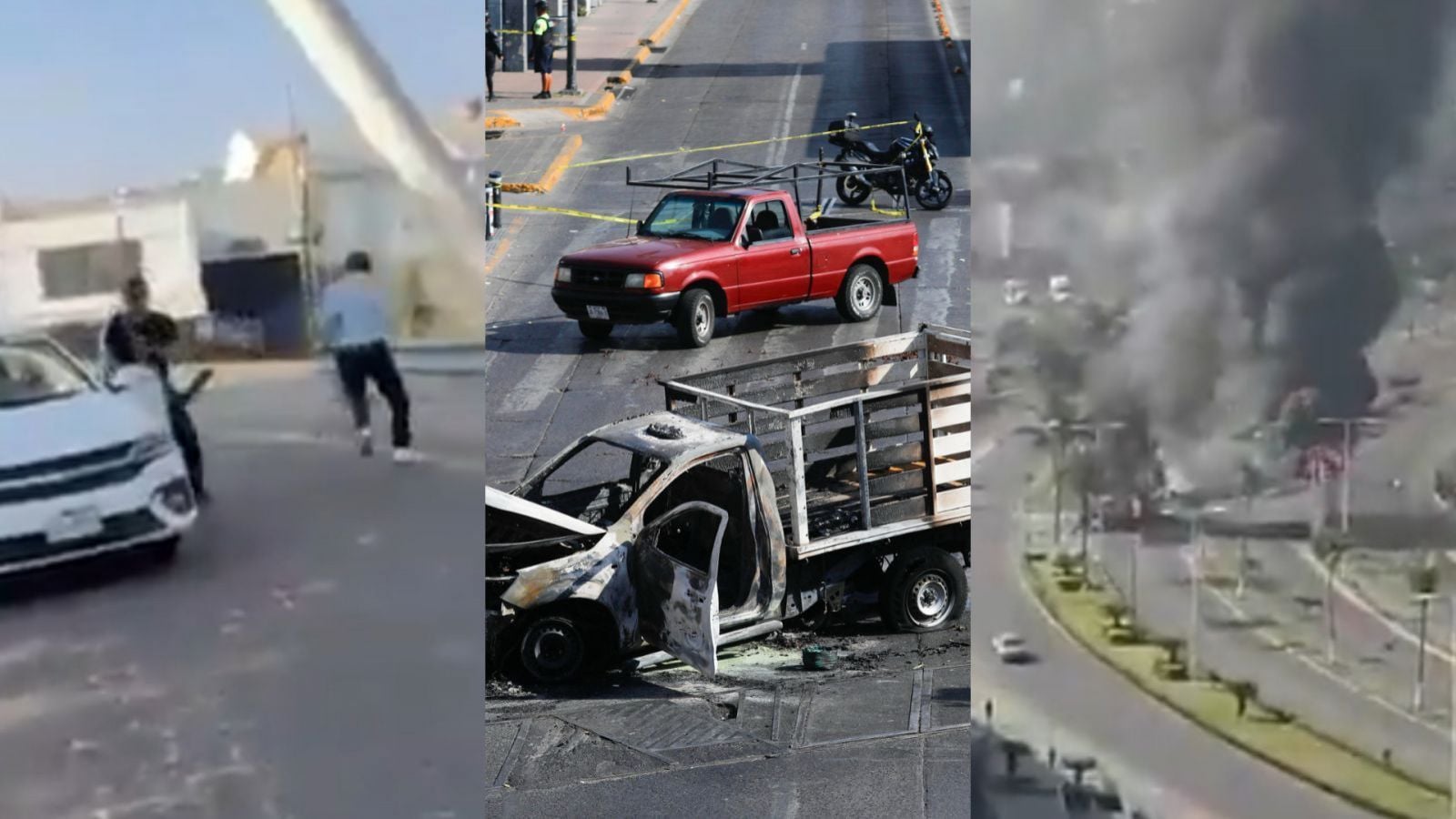 En imágenes difundidas por medios y redes sociales, se observan vehículos en llamas atravesados sobre carreteras y columnas de humo visibles a varios metros de distancia, en Jalisco, Michoacán, Colima, Nayarit, Tamaulipas y Aguascalientes. También circulan imágenes de negocios incendiados en Guanajuato.