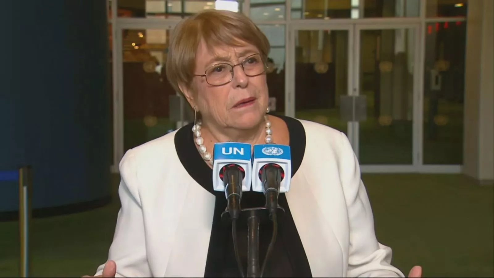 Michelle Bachelet presentó este martes ante la ONU su candidatura para ser la próxima secretaria general de Naciones Unidas, donde se refirió al retiro del patrocinio del Estado de Chile.