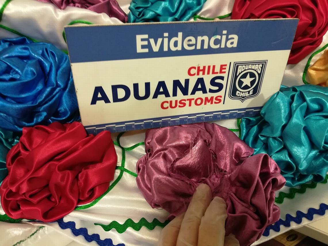 En uno de los operativos se examinó una caja que declaraba un vestido de cueca. Efectivamente, el contenido era un colorido vestido artesanal adornado con más de 90 flores de tela, sin embargo, al examinar más detenidamente la prenda de vestir los funcionarios se percataron que cada 'flor' tenía oculta en su interior una bolsa plástica con una sustancia color blanca, que al ser analizada arrojó clorhidrato de cocaína.