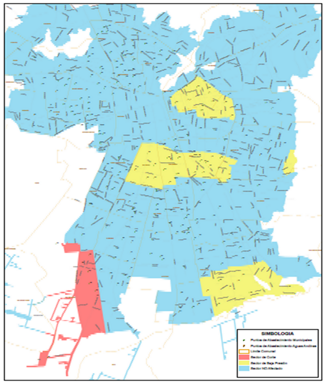 El siguiente mapa da cuenta del perímetro afectado. Las zonas con interrupción del servicio están marcadas de color rojo.