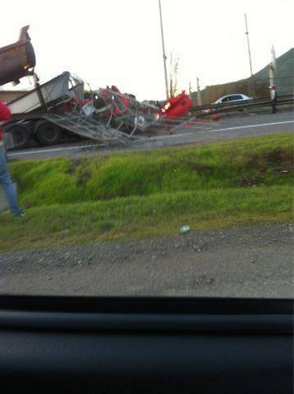 "En el Km 87, sector Llay-Llay, camión tolva botó pasarela Las Palmas, tránsito desviado por la caletera", informó la concesionaria de la Autopista Aconcagua vía Twitter (@Autop_Aconcagua).
