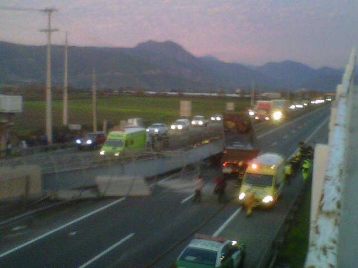 Una pasarela peatonal cayó a las 17.50 horas en la Ruta 5 Norte, a la altura del kilómetro 87, luego de que un camión -según reportes de testigos- impactara con ella.